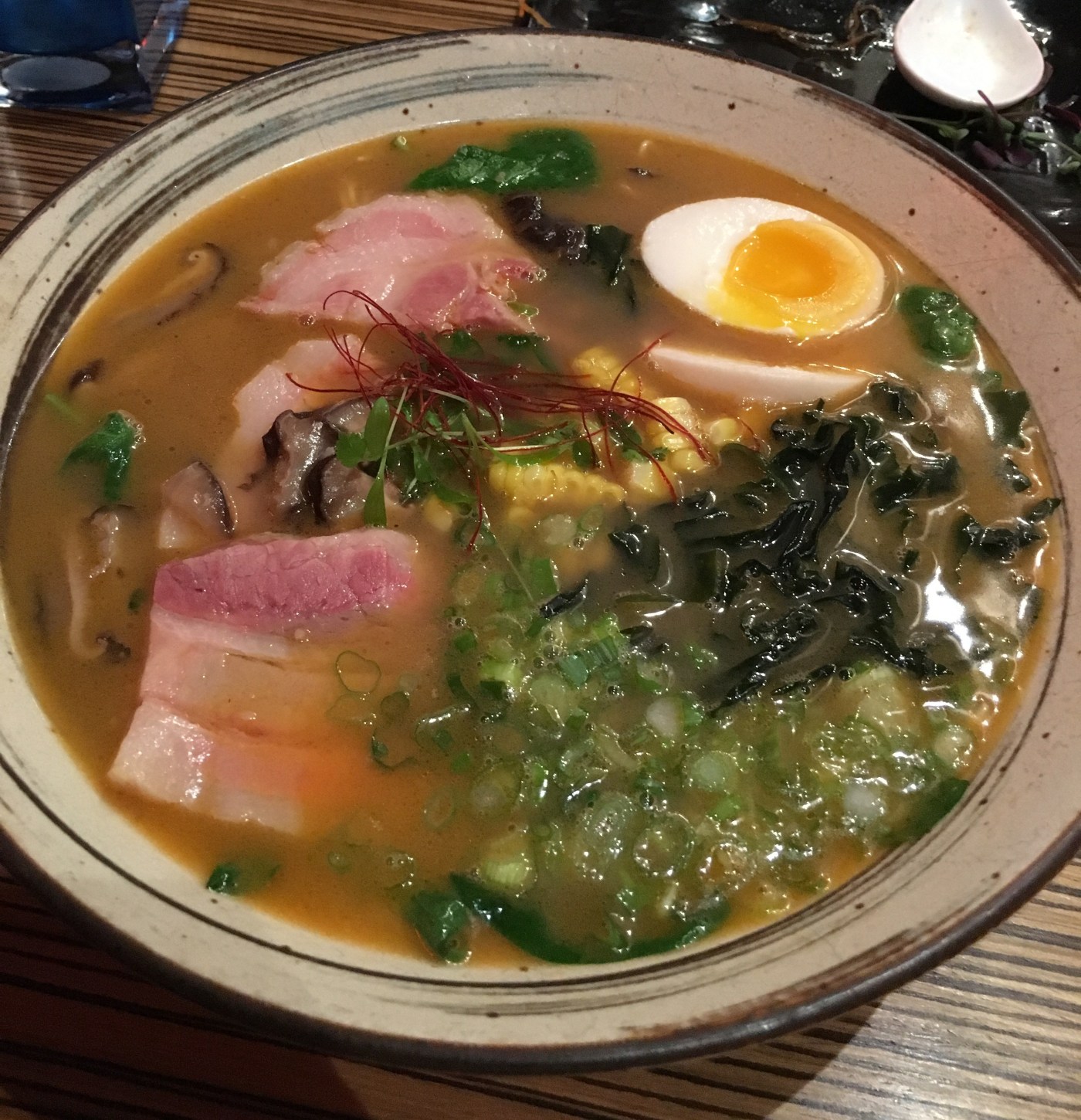 My friend tried the beef udon. It has NY strip beef slices, shiitake, green onions, spinach, wakame, fish cake and sesame seeds. It was ok. A bit bland to our Indonesian tongue. Also I’m not much of an udon fan.